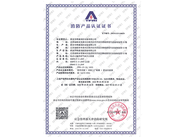 | 滅火劑充裝密度 | ≤1120kg/m3 | |||