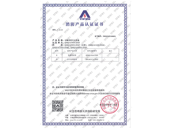 | 滅火劑名稱(chēng) | 七氟丙烷(HFC-227ea) |